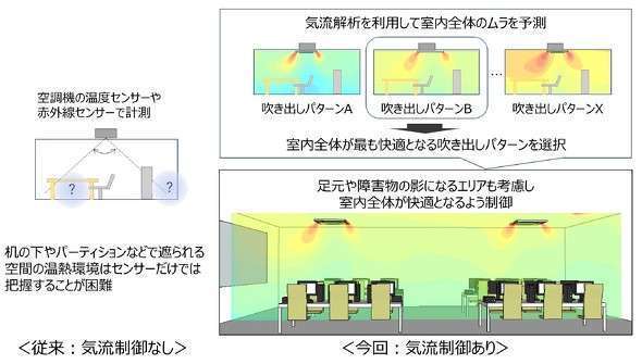 室内における空気の流れ(気流)や温度分布を予測して快適な室内環境を実現する「ビル向け快適気流制御技術」を開発!