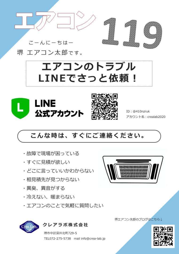 こーんにーちはー 堺 エアコン太郎です。 社名の由来ですか? Crea La...