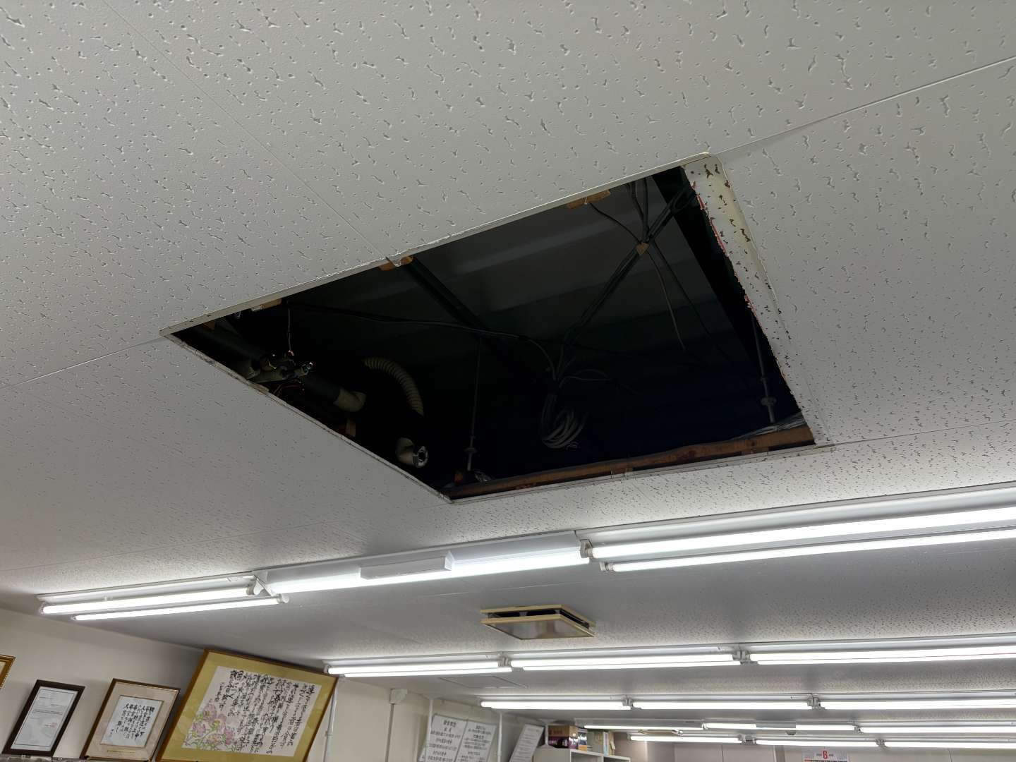 エアコン工事の多忙な時期ではありましたが、職人がスケジュールを柔軟に調整。お客様との事前打ち合わせを密に行い、業務の合間を縫って作業を進めました。さらに、事務所の皆さまにも机の移動などご協力いただいたことで、スムーズな作業が可能となりました。