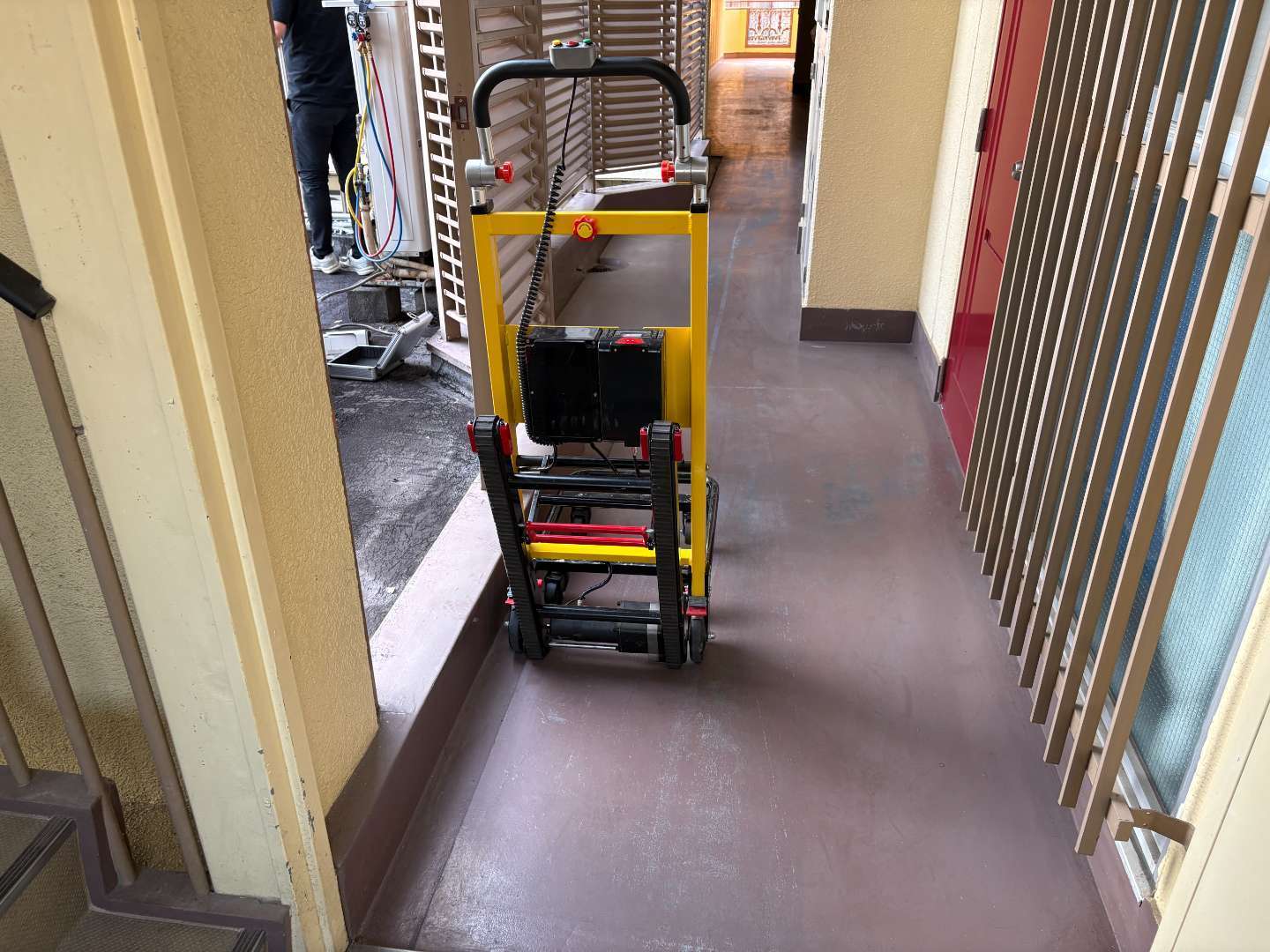 堺市中区にある薬局様にて、業務用エアコンの更新工事を行いました。室内機の設置とともに、室外機は建物2階部分への設置。安全確保のため、昇降機を用いた搬入作業を行いました。